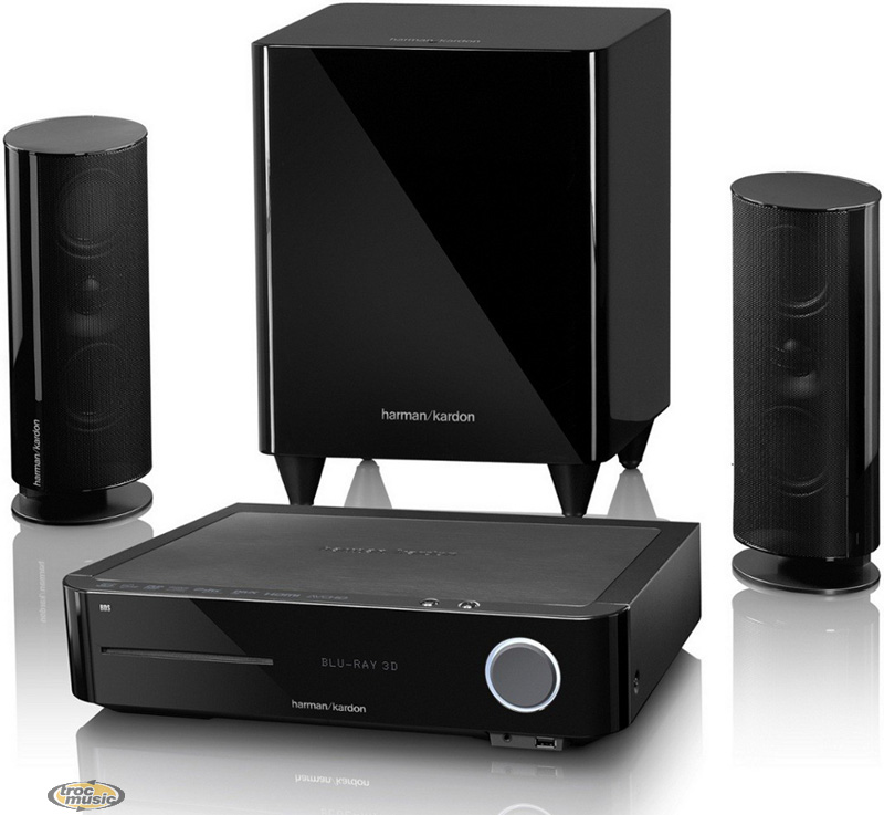 Chaîne home-cinéma Harman Kardon BDS-470 - Amplificateur et lecteur BD/DVD/CD intégré de 2x65 Watts, HDMI 1.4 3D & ARC, USB audio-vidéo, enceintes deux voies et caisson actif de 200 Watts RMS.