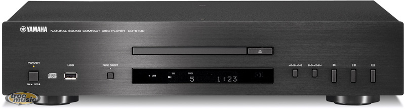 Platine CD mécanique de lecture Yamaha haute fidélité, conception symétrique, mode Pure Direct et alimentation séparée des circuits analogiques et numériques, port USB et lecture MP3/WMA. Finition : Noir ou Titane.