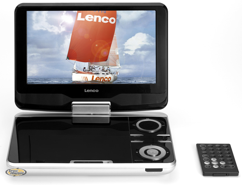 Lecteur DVD portable 22,5 cm (9'') avec USB, lecteur des cartes et batterie intégrée.