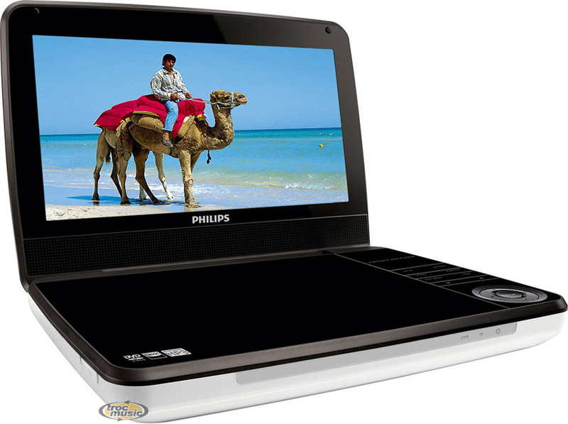 Lecteur DVD/DivX portable avec écran 23 cm de diagonale, lecture DivX, MP3/WMA, télécommande et autonomie 5 heures.
