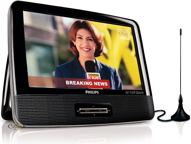 | Lecteur de DVD portable avec écran LCD 23 cm et TV numérique. * Certifié DivX. * Compatible DVB-T (accès gratuit). * Reprise après interruption. * Lecture de CD-MP3, CD et CD-RW. * Guide électronique des programmes (EPG). * Kit de fixation voiture intelligent. * Installation et recherche faciles. * Connexion USB. * Adaptateur secteur, adaptateur allume-cigare. |