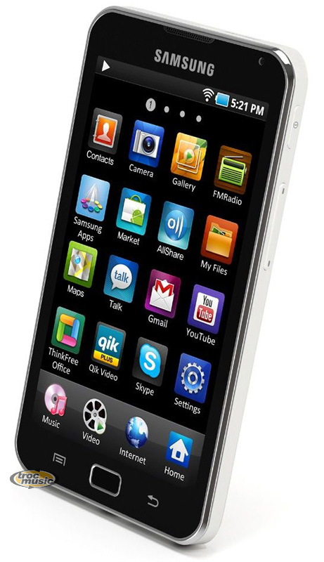 Lecteur Android Galaxy S WiFi 5.0, capacité 16 Go. Ecran 5''. Type d'écran : TFT LCD. Résolution d'écran: WVGA (800 x 480). Type de batterie : Li-Polymer.