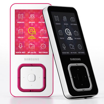 Lecteur MP3/Vidéo 8 Go Noir ou Blanc. Ecran LCD 5,6 cm, tuner FM, audio MP3, AAC, FLAC, vidéo MPEG-4 SD H.264, photo JPEG, PNG, GIF et USB 2.0.