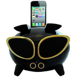 Enceinte avec dock pour iPod et iPhone, design cochon. Puissance : 2 x 4 W. Couleurs : Noir , Blanc, Rose, Bleu ou Rouge.