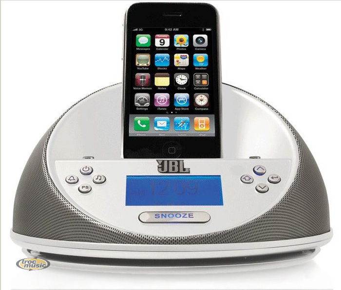 Enceinte iPod Noir ou Blanc. Station d'accueil puissance 12 Watts, compatible iPhone et baladeurs et fonction radio-réveil.