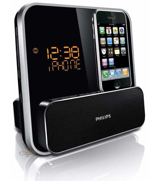 Radio réveil station d'accueil iPod/iPhone 2 x 4 W, tuner FM, double alarme.