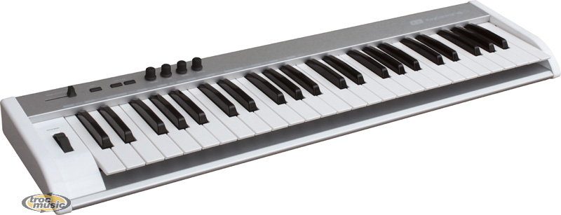 Clavier de contrôle MIDI-USB 49 touches. Finition Aluminium. Très robuste. Pas besoin de driver ni d'alimentation. Sensible à la vélocité. 4 encodeurs rotatifs sans fin. Pitch et modulation. Bouton pour changement d'octave. Entrée pour pédale de sustain. Livré avec Cubase LE PC/Mac.