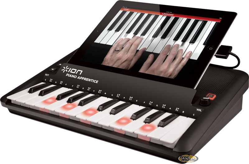 | Piano d'apprentissage 25 touches pour Ipad/Iphone/Ipod. Connectez simplement votre iPad, iPod ou l'iPhone, téléchargez l'appendice (application libre, gratuit) et commencez à jouer du piano immédiatement! PIANOAPPRENTICE est de poids-léger, le clavier de 25 notes portable avec haut-parleurs stéréo incorporés qui livrent le son de piano authentique et les touches qui répondent à votre contact. Il est facile de suivre la leçon de l'instructeur de piano (Scott Houston);. Le Type de Piano utilisé apparaît sur l'écran démontrant comment jouer tandis que les touches réelles sur PIANOAPPRENTICE s'allument, vous montrant où placer vos mains. |