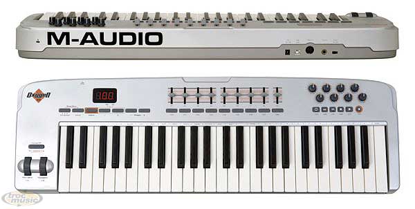 Clavier 49 touches sensibles à la vélocité, 8 boutons MIDI assignables, 9 curseurs MIDI assignables, 6 réglages de transport dédiés.