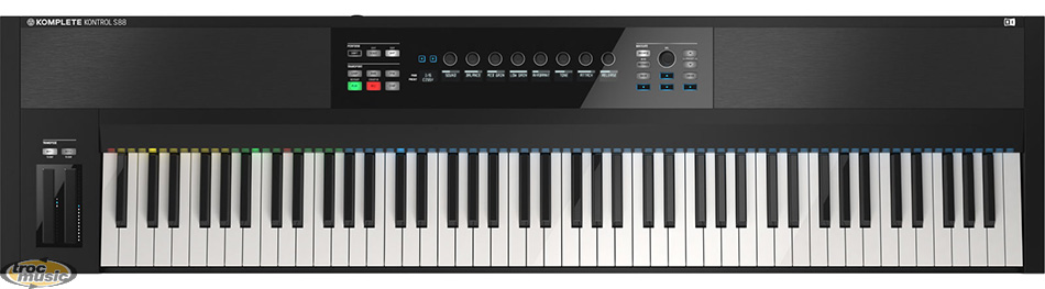 Clavier professionnel à 88 touches avec mécaniques au toucher lourd. Créez des mélodies arpégées sur simple pression d'un bouton, jouez des accords à partir d'une seule note ou assignez des gammes. Inclut Komplete Select, une sélection haut de gamme de 10 instruments et effets.
