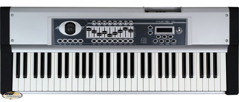 | Clavier MIDI USB avancé 5 octaves, 61 touches toucher lourd (TP/40M), Vélocité et Aftertouch. Affichage LCD avec molette de paramètrage. 3 entrées pédale. Joystick pour le contrôle du Pitch Bend et de la Modulation. 30 presets pour une compatibilité avec les logiciels et plug-ins majeurs. 8 contrôleurs rotatifs assignables, 9 tirettes et 8 bouton programmables. Sortie MIDI. Compatible Mac et PC sans ajout de pilote nécessaire. |