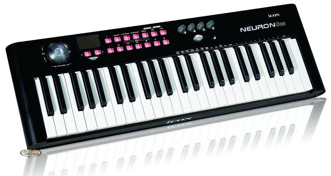 Clavier de 49 touches type piano avec toucher dynamique (sensible à la vélocité). Joystick combinant modulation et hauteur de son (pitch). 4 boutons rotatifs assignables pour paramétrer des CC MIDI. 1 fader assignable. écran LED à 3 segments. Boutons Octave Up / Down. Boutons Transpose Up / Down.