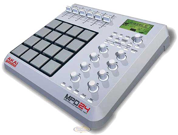 Surface de contrôle USB et MIDI: 16 Pads du type MPC sensibles à la vélocité et à la tenue, 4 banques pour un total de 64 Pads programmables.
