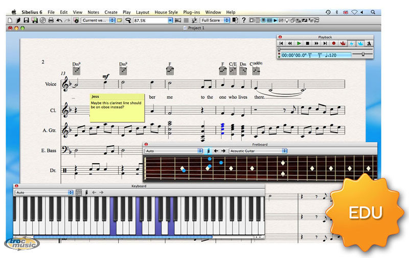 Version Education de Sibelius 6. Uniquement sur bon de commande émanant de l'établissement.