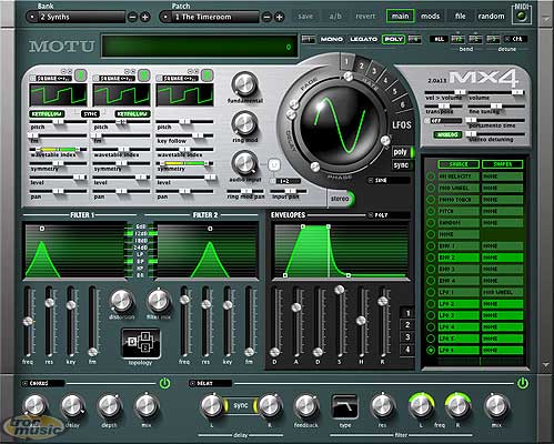 Synthétiseurs virtuels. Moteur de synthèse à multi-architecture. 3000 differentes typologies de filtres.