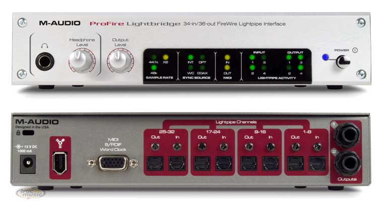 Interface 34 entrées/36 sorties Lightpipe FireWire. Jusqu'` 24-bit/96kHz en mode SMUX.
