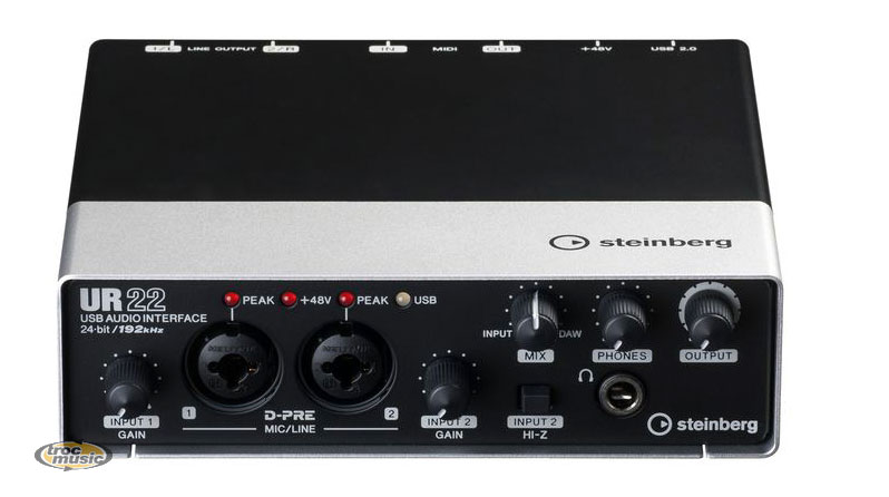 | UR22 - LE MEILLEUR DE SA CLASSE.... Mettant en évidence ses deux préamplis micro réputés D-PRE, ses convertisseurs de première classe 24-bit/192 kHz et un boîtier en métal solide comme le roc, l'interface audio et MIDI UR22 procure un son pur où que vous soyez. Avec un switch dédié haute impédance, une prise casque séparée et une Alimentation fantôme , cet appareil portable 2x2 à est le choix parfait pour les musiciens mobiles, les DJs en tournée et tous les autres. FONCTIONNALITES. Interface audio USB 2.0 24-bit/192 kHz. 2 Préamplis micros D-PRE intégrant une Alimentation fantôme +48V. 2 entrées combo analogiques XLR/TRS (switch haute impédance sur l'entrée 2 pour guitare électrique), 2 sorties ligne TRS. Entrée et sortie MIDI. Prise jack écouteurs avec réglage indépendant de niveau. Monitoring zéro latence avec bouton de balance de mix. |