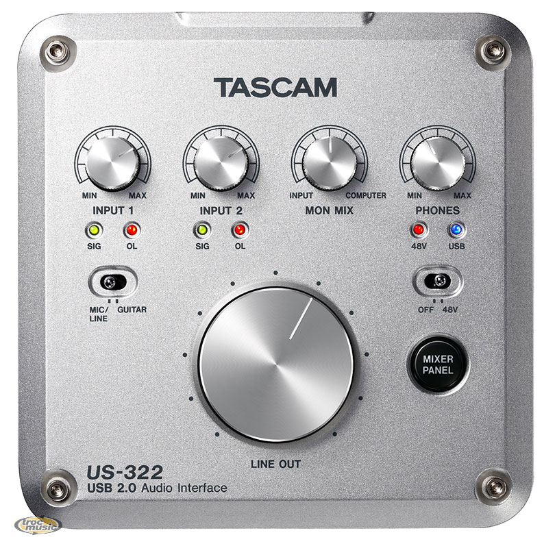 | Offre 2 entrées audio et 2 sorties audio sur un ordinateur Macintosh ou PC sous Windows. 2 entrées Micro/Ligne sur connecteur Combo (mixte XLR/jack TRS). Préamplis micro Tascam, technologie HDDA (High Definition Discrete Architecture) : circuit de préamplification différentiel, utilisant des transistors et autres composants électroniques sélectionnés avec soin, assurant un rapport S/B élevé, un bruit de fond d'entrée réduit et un taux de distorsion bas. Alimentation fantôme (48 Volts) commutable, pour utilisation de microphones statiques. Une entrée jack TRS commutable haute impédance, pour branchement direct de guitare ou basse électrique, etc. 2 sorties Ligne (connecteurs RCA ou jacks symétriques TRS). Fréquence d'échantillonnage maxi 96 kHz, résolution maxi 24 bits. |
