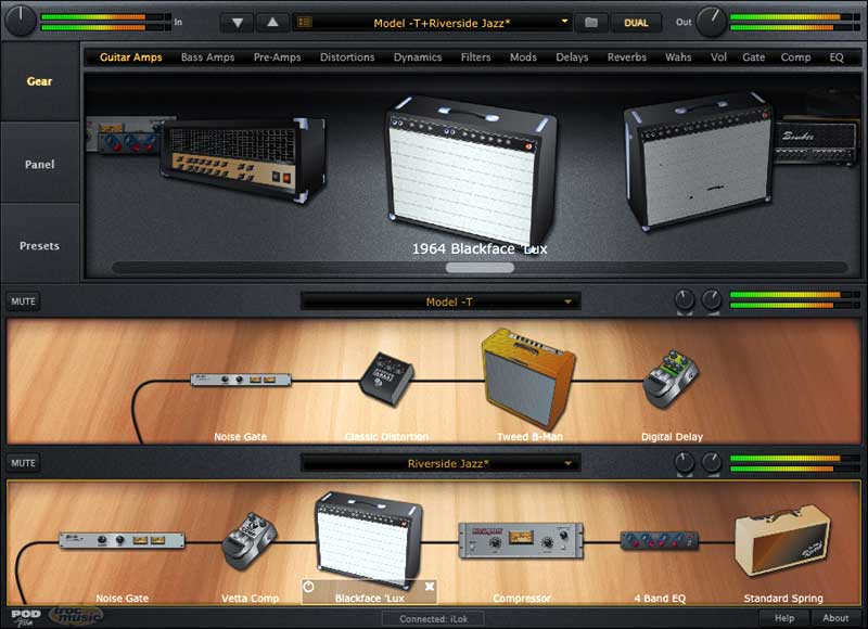 | Plug-Ins vous permettant d'intégrer les sons du POD à votre station d'enregistrement audionumérique sur ordinateur. 78 Amplis guitare, 24 enceintes guitare, 28 amplis basse et 22 enceintes basse, 97 pédales et effets de studio essentiels, 6 préamplificateurs micro et la fonction Dual Tone permettant de combiner les caractéristiques tonales de 2 programmes. |