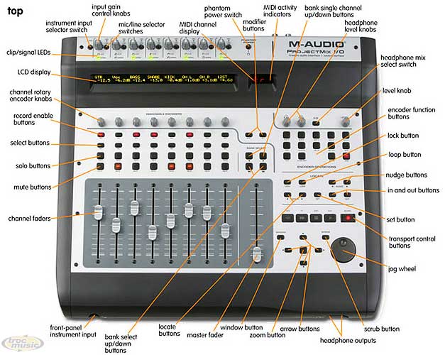 Surface de controle avec curseurs motorises et interface FireWire audio 18 x 14, 8 entrees micro/ligne.