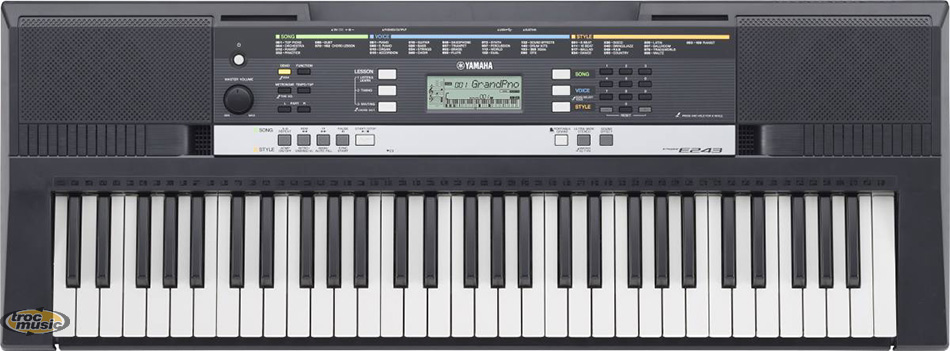 | Premier modèle de la gamme, le PSR-E243 se veut avant tout ludique et fonctionnel. 385 sonorités, 100 styles d'accompagnement et 102 morceaux intégrés. Il intègre le système complet d'éducation musicale "Y.E.S.", permettant aux débutants de s'initier facilement à la musique grâce à des indications claires sur l'écran LCD intégré. Clavier 61 touches. Polyphonie 32 notes. Ecran LCD 260 x 90 dots. |