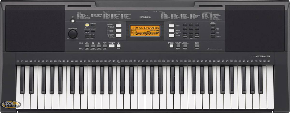 | Avec ses 550 sonorités, ses 136 styles, ses fonctions d'enregistrement et son système éducatif intégré, il possède en outre des fonctionnalités uniques : ''Melody Suppressorâ” permet, lorsque l'on connecte un lecteur Audio à l'entrée Aux-IN du clavier, d'atténuer voire de supprimer la partie solo du morceau; de mà me, le PSR-E343 peut se connecter à un iPAd, iPhone ou iPod, via son port USB To Host. Clavier 61 touches dynamiques. |