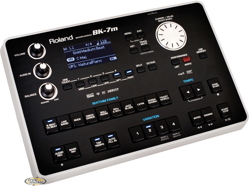 Module arrangeur : module d'accompagnement ultra compact pour instruments compatibles MIDI comme des pianos, des accordéons, des orgues ou des claviers. Plus de 1000 sonorités, 57 kits de batterie, polyphonie de 128 voix.