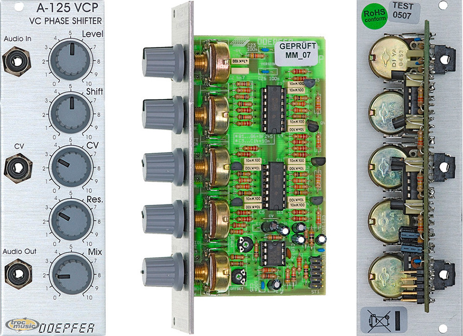 Module A-125 (VC Phaser ) is a voltage controlled phase shifter.Phase shifting can be controlled either manually or by voltage control..