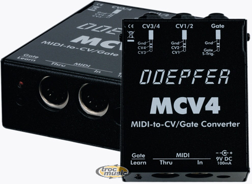 Le MCV4 est une interface MIDI vers 4 CV et un Gate pour les petits budgets ou les petits besoins.Paramètres stocks en mémoire non volatile 4 CV Out, 0-+5V, résolution 8 bit CV1 pour pitch (note on/off avec pitch bend, 1V/oct), priorité des notes au choix.