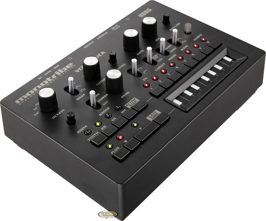 Le séquenceur analogique Korg Monotribe est un synthétiseur analogique portable. Equipé d'un VCF, VCO, VCA, LFO ainsi que d'un clavier à ruban. La création de grooves se fait grâce à un séquenceur type Electribe.
