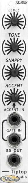 | Quel bidouilleur électronique n'a pas rêvé de posséder la légendaire TR808, surement l'une des meilleure boite à rythme jamais conçue. Souvent imitée et souvent ratée, cette boite à rythme reste inaccessible tant sont prix à l'occasion est prohibitif. L'ingénieur de Tip Top audio s'est penché sérieusement sur la reproductibilité du son de la fameuse machine. Il a testé, relevé et reproduit à l'identique chaque réglage de la course de chaque bouton de sa 808. Le résultat est ahurissant, ses modules sonnent mieux que ma 808, moins de souffle et plus de ''patate''!!!pour ça qu'il sonne comme une SD808!- 1 entrée gate in. 1 entrée accent. 1 sortie audio. |