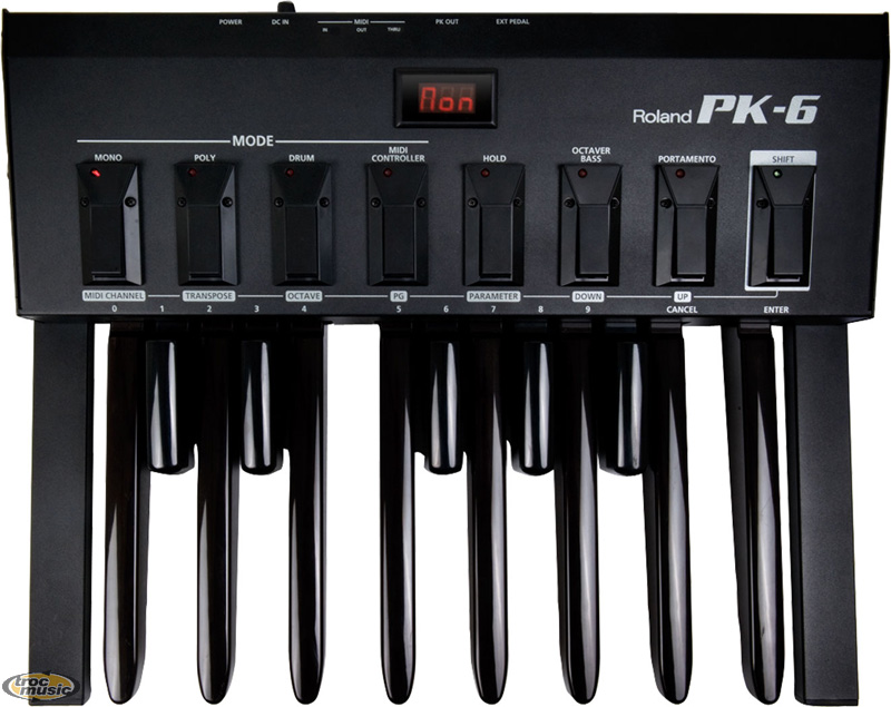 | Pédalier dynamique MIDI. Quatre modes de jeu : Mono, Poly, Drums, MIDI Controller. 13 pédales (notes) sensibles à la pression couvrant une gamme chromatique d'une octave. Affichage à 7 segments permettant une manipulation simple et efficace. Transposition sur une plage de 9 octaves. Prise PK Out simplifiant la connexion avec de nombreux instruments Roland. Fonction MIDI 'Merge'. Alimentation par piles. |