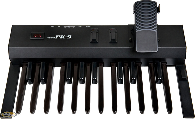 | Le nouveau pédalier MIDI PK-9 à 20 notes est conçu pour les orgues Roland ATELIER Combo AT-350C et AT-900C ainsi que les orgues combo de la série VR/VK, l'orgue classique C-200 et d'autres orgues compatibles MIDI. Successeur du pédalier PK-7A, le PK-9 peut être branché par un simple câble PK à un orgue Roland doté d'une prise PK-IN. Ce câble permet à la fois d'alimenter le pédalier et de transmettre les données au clavier hôte. |