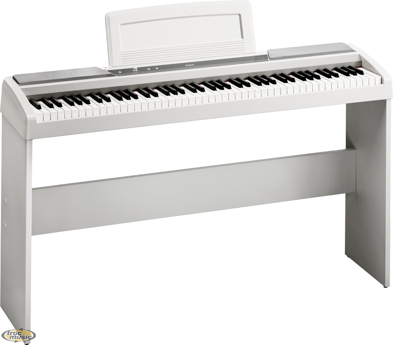 | Piano numérique portable blanc : Clavier : 88 notes (NH nouvelle mécanique sensible à la vélocité). Génération sonore : échantillonnage stéréo. Sonorités : 10 timbres. Polyphonie : 120 notes (60 en stéréo). Effets : réverbération et chorus. Connecteurs : Sorties (MONO et STEREO), 2 casques, MIDI OUT, connecteur d'entrée jack pour pédale de sustain. Amplificateur : 2 x 9 Watts. Haut-parleurs : 2 haut-parleurs de 10 cm avec une boîte de résonance pour le système ''Bass reflex''. Alimentation : adaptateur de 12 V fourni. Dimensions : 1312 (L) x 325 (P) x 133 (H) mm. Poids : 12,1 kgs. Accessoires fournis : Alimentation secteur, pupitre et pédale de sustain. |