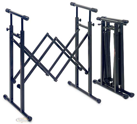 Stand réglable pour mixer/clavier avec système de pliage style accordeon.