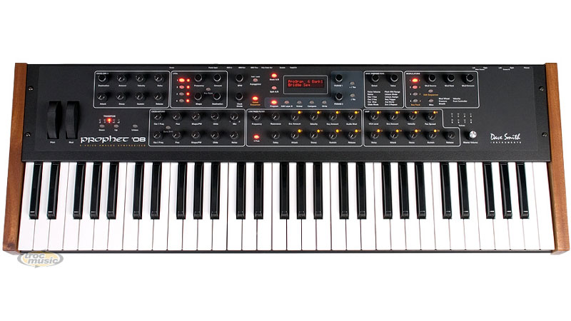 Version potentiomètre du synthétiseur Prophet Standard '08. Clavier 5 octaves semi-lesté avec velocité et Aftertouch. 256 Programmes.