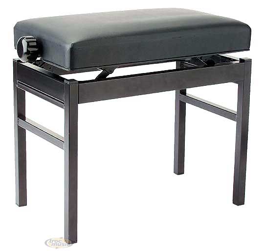 Banquette piano en métal, type ''chesterfield''. Hauteur réglable 47 à 55 cm, dimension siège 56 x 33 cm. Noir/Skai noir.