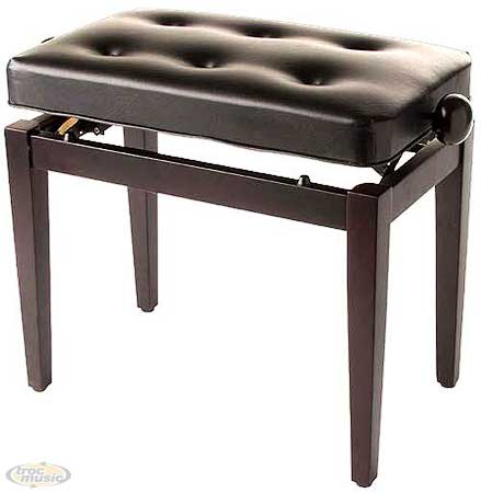 Banquette piano ''Chesterfield''. Hauteur réglable 47 à 55 cm, dim.siège: 56 x 33 cm. Palissandre foncé mat/skai noir.