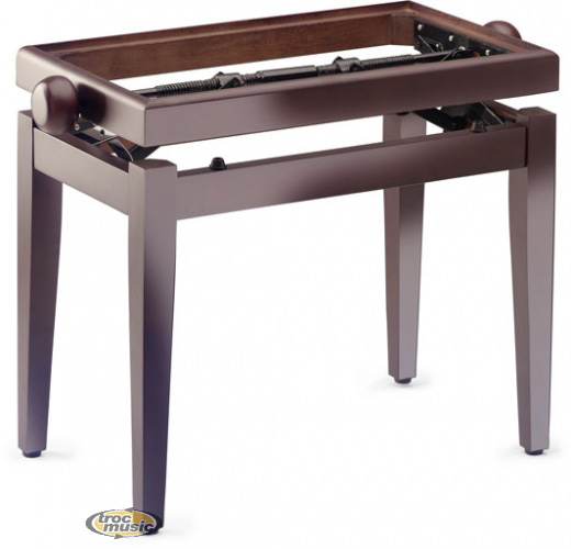 Banquette piano sans pelotte. mécanisme de levage de précision en ''double croix''. hauteur réglable: 46 à 55 cm. dim.siège: 55 x 32 cm. poids: 7,5 kg. démontable. finition acajou verni ou acajou mat.