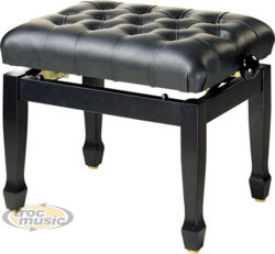 Banquette piano ''concert'', hauteur réglable: 51 à 60 cm, dimension siège: 55 x 32 cm, poids: 10.8 kg, noir poli/cuir noir.