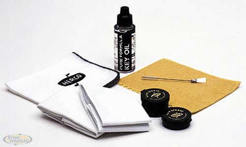 Kit d'entretien pour flûte / Picollo : 1 flacon d'huile pour clés, 1 graisse pour coulisse, 1 écouvillon et 2 chiffons.