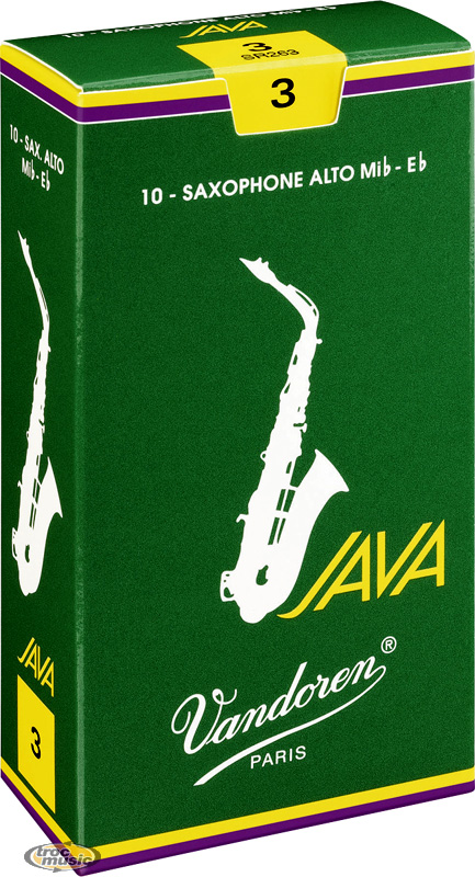 Anches saxophone alto série Java, boîte de 10 anches. Force 2,5. Les anches JAVA sont plus flexibles que les anches Traditionnelles et les V16, et vibrent sur une grande palette, développant ainsi un son brillant avec une réponse immédiate.