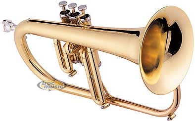 Bugle d'étude sib en cuivre rose. Perce : 11,00 mm. Pistons Monel. Clé d'eau cylindrique.