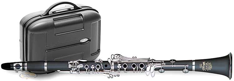Clarinette böhm sib, 18 clés / 6 anneaux. Corps en bakélite. Clétage nickelé. 2 Barillets: 440 et 442 hertz, 65 mm. Livrée avec bec, ligature, couvre-bec, écouvillon et étui en abs.