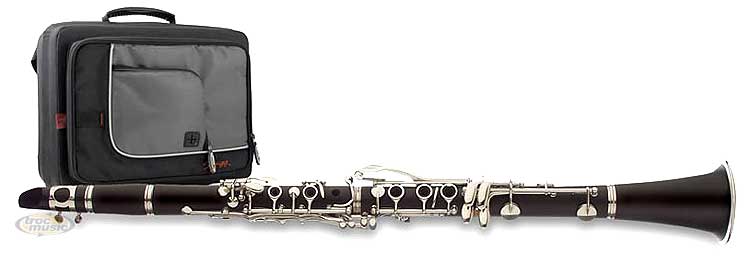 Clarinette Böhm sib, 17 clés / 6 anneaux. Corps en bakelite, imitation ébène. Livré avec softcase léger deluxe en nylon imperméable.