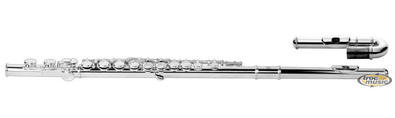 Flûte traversière en Ut - plateaux pleins - 2 têtes. Tête, tube et clés argentés - contient une tête additionnelle courbe - plateaux pleins décalés - mi mécanique - étui ''Light''.
