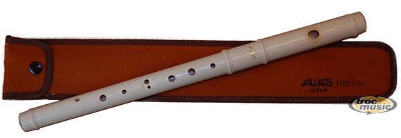 Fifre en do, ivoire, deux parties, double trou, housse.