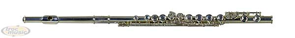 Flûte traversière idéale pour débuter. Tête, corps et clés en maillechort argentés, Mi mécanique, étui en bois.