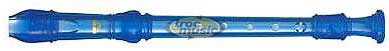Flûte à bec soprano, corps en plastique translucide bleu, doigté baroque, idéale pour usage scolaire.
