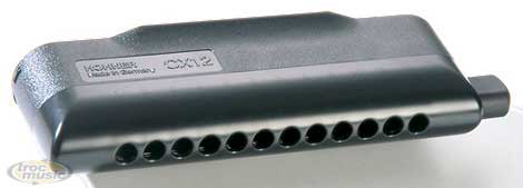 Harmonica chromatique noir. Sommier et corps plastique, 12 trous, 48 lames. Tonalités disponibles: La Si, Sib, Do, Ré, Mi, Fa, Sol. Accord tempéré. Dimensions 16,5 cm.